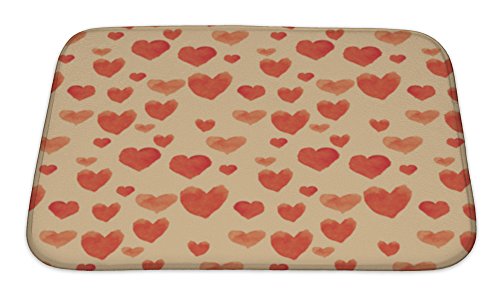 Gear New No Slip Microfiber Memory Foam Watercolor Heart Pattern Bath Rug Mat, 24" X 17"