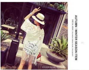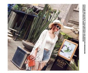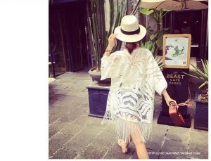 フリンジ ガウン レースカーディガン ミディアム丈 透け感 ドルマンスリーブ プチプラセール 海 羽織り 春夏