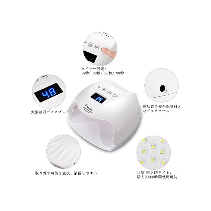 원본상품명: Ovonni UV LEDネイルドライヤ 自動センサ 48W ネイル ledライト 硬化用ライト 四つタイマ付き UV LED ダブル光源 ネイルジェル ライト ハイパワ 速乾