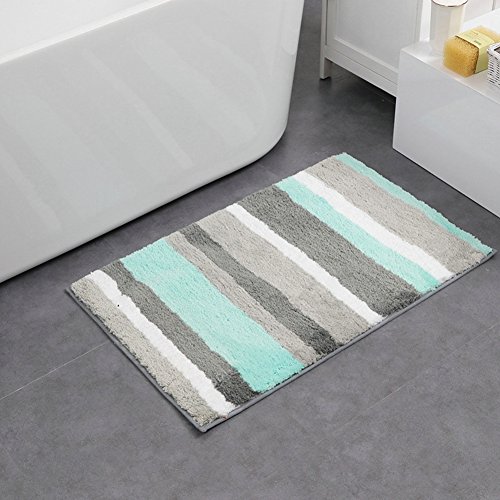 Ilishop Stripe Bath Rug Gray-Yellow Non-slip Mats Green 17.7X25.6 Inch
