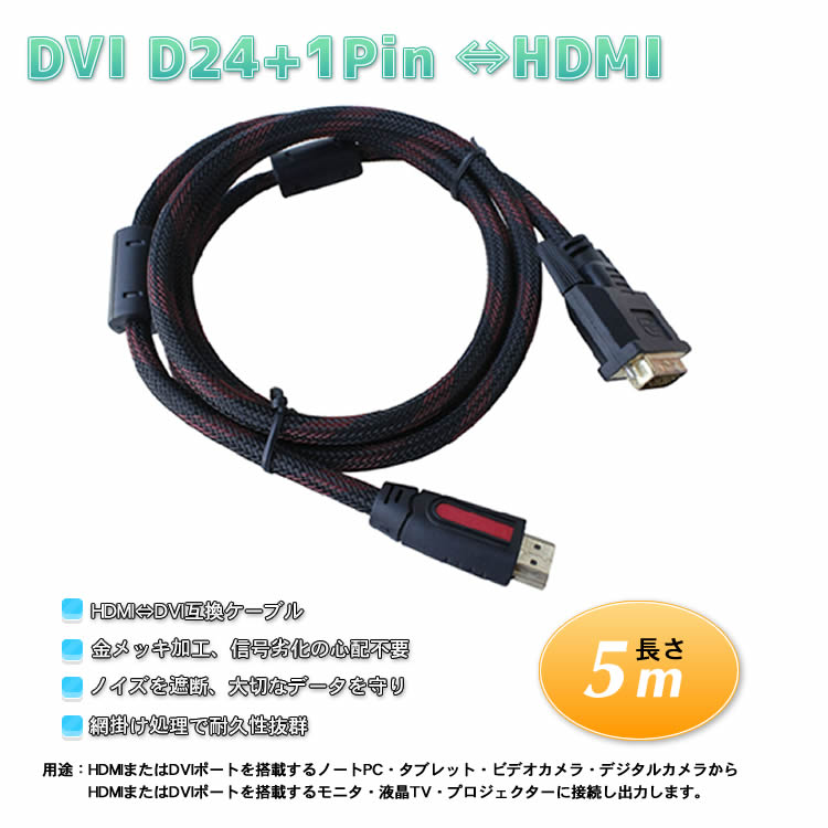 ●HDMI規格の機器とDVIインターフェースを持つ機器を接続するケーブル。