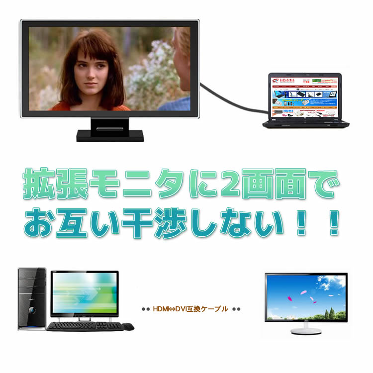 ●HDMIコネクタを持つDVD/HDレコーダーとDVIコネクタ(HDCP対応)を持つ高解像度テレビ、プロジェクターなどの機器を接続するケーブルです。