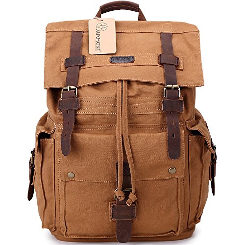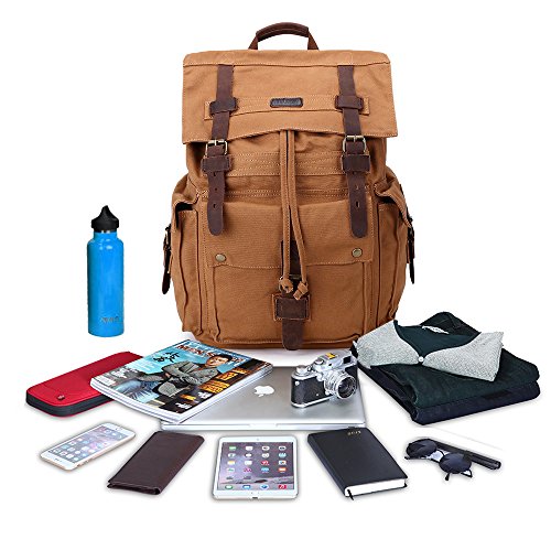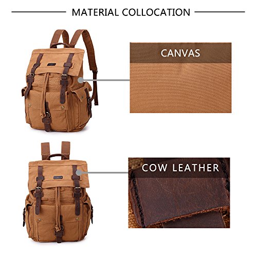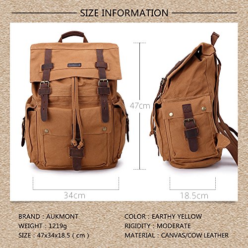 Title : Canvas Backpack Vintage Military School Bag Bookbag Men Casual Satchel #1219 Eathy Yellow