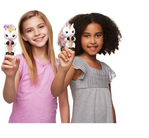 Gigi the Fingerlings Baby Unicorn loves to grab onto things especially your fingers! This unique little pet responds to you with special unicorn sounds in response to noise, motion & touch. She will let you know how she feels with her adorable blinking eyes and head turns. You'll get different reactions if you pet her, rock her to sleep or hold her upside down. If you blow your unicorn a kiss, she will kiss you right back! You can also brush her soft rainbow mane and tail and she has a tiny horseshoe on her rump. Magical friendship at your fingertips!Feature