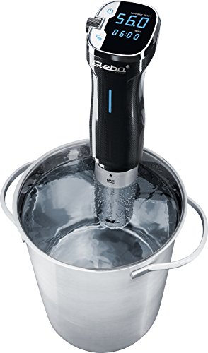 Steba SV 50: ° Edelstahl-Gehäuse ° Intuitive Bedienung mittels Drehregler ° Erwärmt 20 l in ca. 45 min auf 56° C: Abweichung -max. 0,5° C ° Wasserumwälzung: 8,0 l/min °Beleuchtetes LCD- Display für: - Aktuelle Temperatur - Timer (bis 99 h) - Exakte elektronische Temperaturregelung bis 90° C Mobil einsetzbar, platzsparend und handlich Variabel einsetzbar für alle Töpfe ab 15 cm Tiefe Eigengeschmack, Vitamine und Mineralstoffe bleiben bestmöglich erhalten.Feature