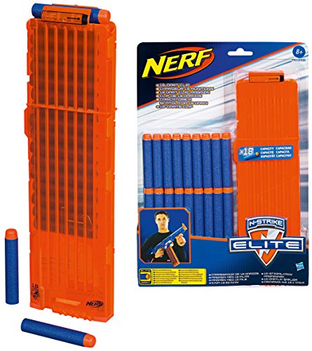 -. Feature : Nerf N-Strike Elite Blaster 18-Dart Clip / Includes 18 darts / Increase your ammo capacity with the nerf n-strike elite 18 dart clip / Compatible with all clip loading nerf blasters in the n-strike series / For ages 8+