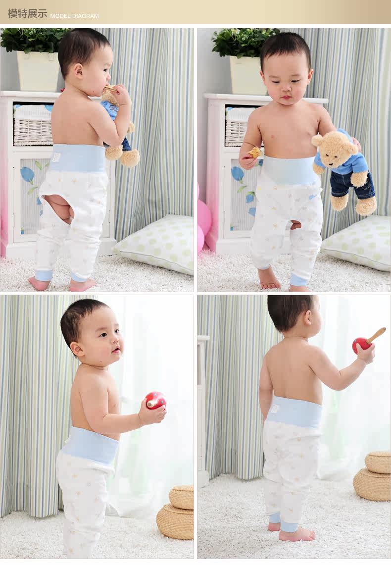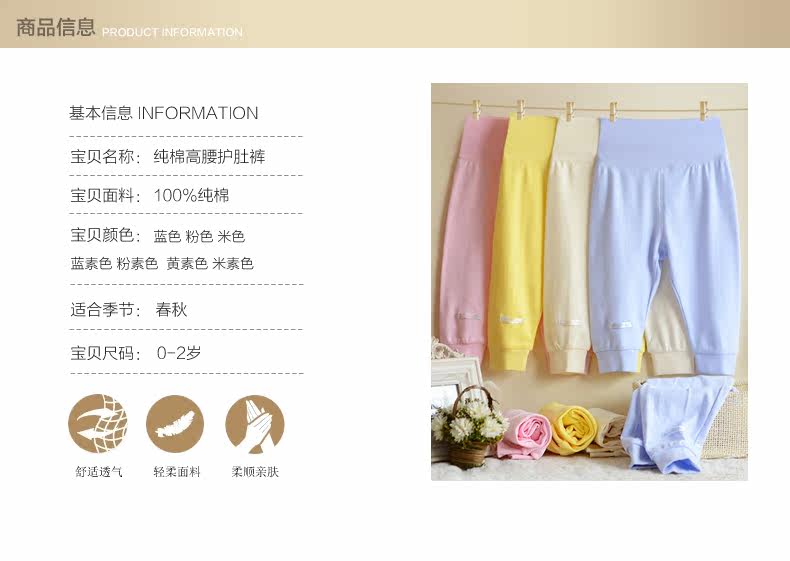 宝宝纯棉护脐裤纯棉新生儿秋裤春秋冬开裆裤 婴儿高腰护肚裤