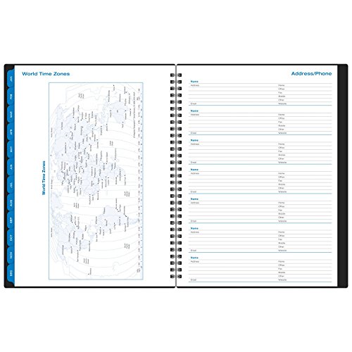 -. Feature : Day-Timer Monthly Wirebound Business Planner in Bonded Leather Cover includes a full year of 2-Page-Per-Month calendar pages and covers from January - December. Black, bonded profesional leather cover is made from 70% recycled leather fibers. / Monthly 2-Page-Per-Month spreads include future planning calendars in the margin with the current month highlighted. Months are tabbed for quick date look-up. / Includes expense and memo pages for each month as well as an address / phone directory and other reference pages