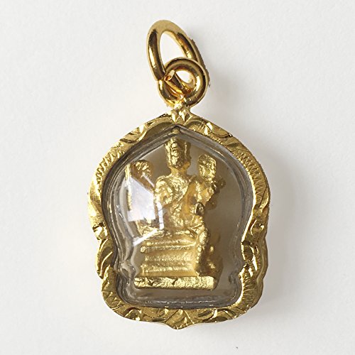 Lord Brahma Thai Amulet Pendant Necklace God for Fortune Good Luck Success Good Protection Gold Sand Brushed, Thai Pendant,Thai Amulets Hanger, Good Luck