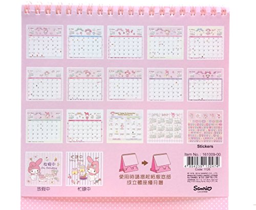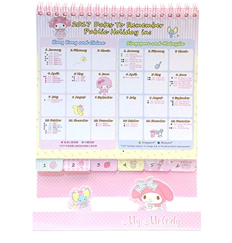 -. Binding : Office Product -. Brand : Sanrio -. Color : Pink -. EAN : 4894239132474 -. Feature : Including Hong Kong, China, Singapore and Malaysia holiday in the same book / Made of hard paper / Glitter P.R.Int on the first page, 3D paper holder / 1 sticker sheet, 2 status board and 2017 calendar page included / Desk Top Calendar Size approx. 6.5"W x 9.5"H x 0.25"D / 17 x 24 x 0.5 cm -. Label : Sanrio -. Manufacturer : Sanrio -. MPN : 132474 -. PackageQuantity : 1 -. PartNumber : 132474 -. ProductGroup : Office Product -. ProductTypeName : OFFICE_PRODUCTS -. Publisher : Sanrio -. Studio : Sanrio -. Title : 2017 My Melody Glitter Cover 3D Monthly Yearly Desktop Calendar With Sticker Sheet