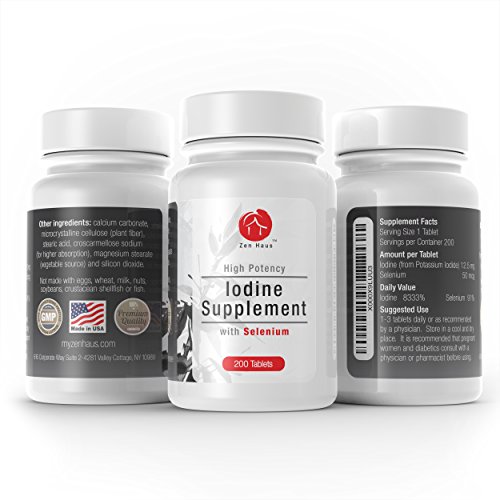 -. Binding : Health and Beauty -. Brand : Zen Haus -. Color : White -. Feature : ★ FIRST SMALL IODINE SUPPLEMENT TABLETS WITH SELENIUM AND 12.5mg of AVAILABLE IODINE. We have researched and formulated the ideal balance of iodine and selenium for the most effective delivery of iodine to the whole body / ★ SMALL TABLETS THAT ARE EASY TO SWALLOW - Highly compressed tablets means smaller tablets, a smaller bottle size and greater convenience / ★ NO TASTE! - There will be no brassy or metallic taste when you are taking the Zen Haus Iodine Supplements. Also, the ingredients will NOT cause digestive issues. / ★ 200 PILLS PER BOTTLE - Get an extra 20 pills per bottle for the same price / ★ SUITABLE FOR VEGAN/VEGETARIAN AND WEIGHT-LOSS DIETS - Tablets are free from all animal products and helps increase metabolism -. IsAdultProduct : 0 -. Label : Zen Haus -. Manufacturer : Zen Haus -. MPN : 641022996843 -. PartNumber : 641022996843 -. ProductGroup : Health and Beauty -. ProductTypeName : HEALTH_PERSONAL_CARE -. Publisher : Zen Haus -. Size : 100cc -. Studio : Zen Haus -. Title : Zen Haus High Potency 12.5 mg Iodine Potassium Iodide Supplement Thyroid Support & Weight Loss 200 Tablets