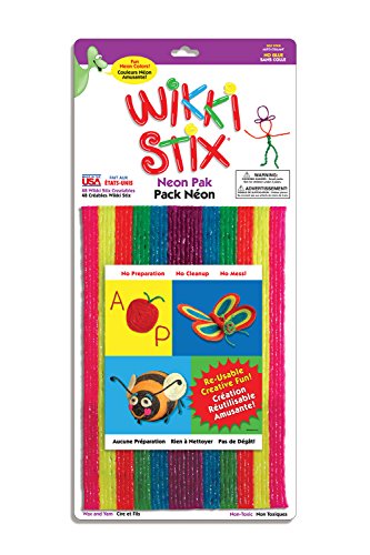Bilingual Neon Colors (English and French) The Original Neon Wikki Stix! Includes 48 eight-inch Wikki Stix in six hot neon colors plus illustrations, play and craft ideas on the back. Perfect for home, school, playtime and more. Colors include: Hot pink, Brite Yellow, Tangerine Orange, Lime Green, Electric Blue and Bright Purple. Wikki Stix are the timeless toy for hands-on fun and traditional play. Plus perfect for educational activities and class projects. More fun than a toy. More creative than a craft! Widely used in schools, Wikki Stix conform to ASTM D-4236 and all CPSIA safety regulations. Recommended for ages 3 and up. This no-frills package offers lots of Wikki Stix creativity! Package information is totally Bilingual.Feature