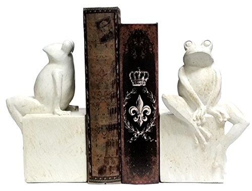 - Sophisticated Thinker Frog Couple Shelf Bookends - Intricately cast of resin, the antique white finished