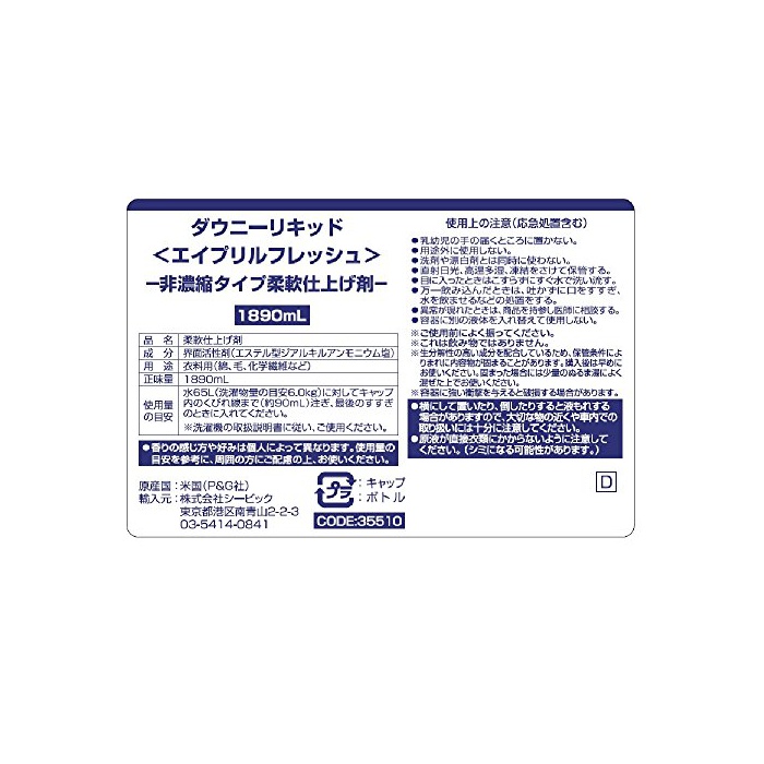 원본상품명: Downy (ダウニ?) 柔軟? 非濃縮タイプ エイプリルフレッシュ
