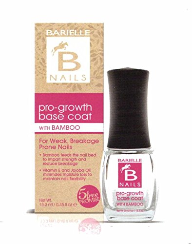 Studio : Fiske Industries Publisher : Fiske Industries Binding : Health and Beauty Product Description Don't let nail breakage get in the way of your manicure anymore! Barielle's Pro-Growth Base Coat with Bamboo is formulated with Vitamin E and Jojoba Oil to deliver maximum nail hydration to maintain nail flexibility. 0