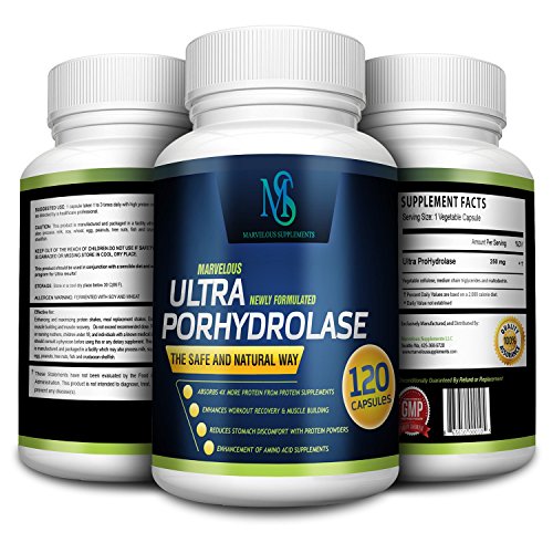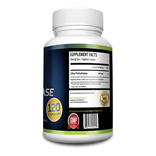 -. Feature : INCREASED PROTEIN ABSROPTION: No form of protein can be absorbed by the body if it is not efficiently broken down to its building blocks, amino acids. Marvelous ProHydrolase provides you with a potent blend of enzymes which boost protein digestion and decrease unprocessed protein accumulation and excretion. / REDUCED DIGESTIVE DISCOMFORT: Protein-rich diets are associated with bloating, gas, a distended abdomen and a feeling of drowsiness. This general malaise is related to protein being improperly or insufficiently digested. With Marvelous ProHydrolase, you can allay all the aforementioned feelings of unease and advance your weight loss goals, feeling renewed and confident in your dietary choices. / ENHANCED MUSCLE BUILDING: It's really simple - more available amino acids translate to stronger, leaner muscles. Whether you are actively seeking to build or enhance muscle mass, the Marvelous ProHydrolase supplement is your best choice for daily supplementation, helping you make the most out of your daily protein intake. / EXPEDITED MUSCLE RECOVERY: Treating your muscles right is key for building a sculpted physique. A faster recovery time is only possible when all essential nutrients and amino acids are available when needed. Marvelous ProHydrolase will render amino acids easy to absorb through your digestive tract and readily bioavailable, working in tandem with other nutrients gained through your daily nutrition plan to restore your muscles after even the most arduous of workouts. / IDEAL DIET SUPPLEMENTATION: Whether you are heavily invested in fitness, Cross training, weightlifting, powerlifting, competitive bodybuilding, or following a protein-rich diet, then Marvelous ProHydrolase will become your new diet staple. As our supplement is incredibly effective in digesting egg, soy, whey, casein, pea and h.e.m.p-derived protein, it makes for a great addition to your protein shakes, smoothies, or protein meal replacement regimen.