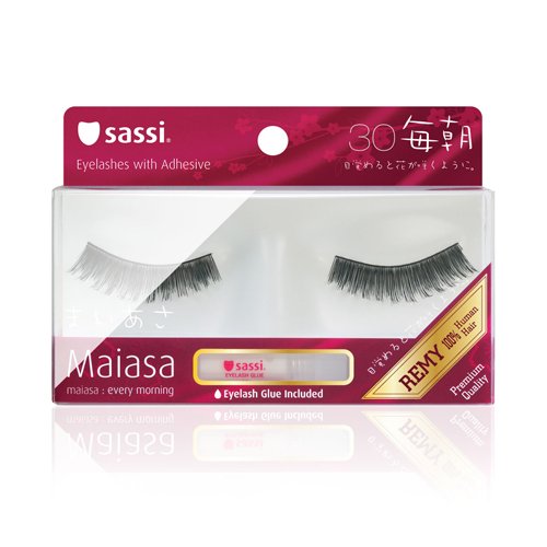 Sassi 803-030 Maiasa 100% Remy Human Hair Eyelashes, Black, 4 Count