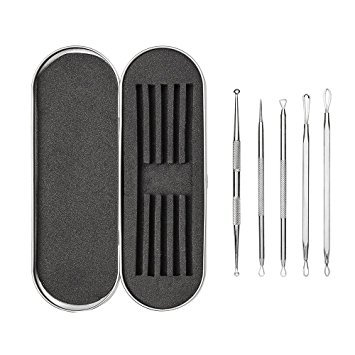 Elephant Xu 5-Piece Acne Blackhead Removal Tool Set Professional Curved Blackhead Tweezers Kit, Pimple Comedone Extractor Tool Set, Treatment for...