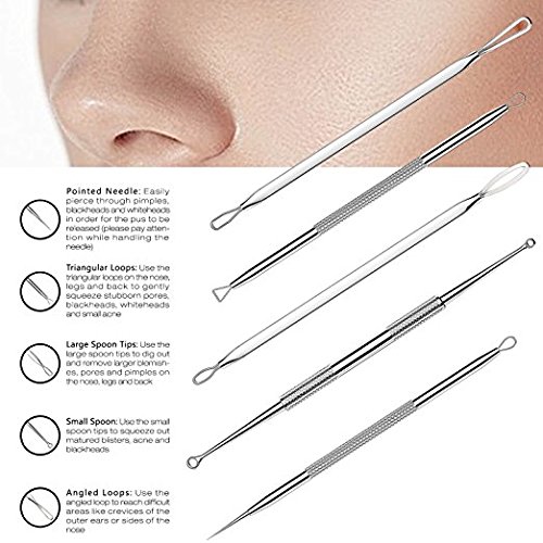 - The variety of tools makes it easier to reach those hard-to-get spots and remove different sizes of acnes, blackheads, pimples, comedones and other facial impurities without allergic reactions