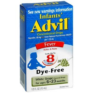 -. Binding : Health and Beauty -. Brand : Advil -. Feature : Temporarily reduces fever / Treats symptoms of the common cold, flu, headaches and toothaches / It lasts up to eight hours / Relieves minor aches and pains / Alcohol-Free -. Label : Advil -. Manufacturer : Advil -. ProductGroup : Health and Beauty -. ProductTypeName : HEALTH_PERSONAL_CARE -. Publisher : Advil -. Studio : Advil -. Title : Infants' Advil, Dye-Free White Grape
