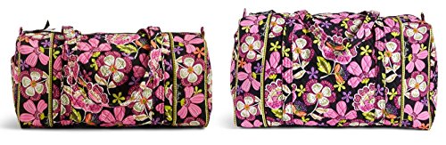 -. Brand : Vera Bradley -. Color : Pirouette Pink -. Department : womens -. EAN : 0886003005002 -. Feature : Large Duffel Dimensions: 22" W x 11½" H x 11½" D - 15" strap drop with Solid Black quilted interior / **15" strap drop, Handy outside end pocket, Larger size but still meets airline carry-on regulations / **Great for sweaters and out of season clothes, Folds flat for easy storing / Small Duffel Dimensions: 18½" W x 9½" H x 9½" D with 15" strap drop with Solid Black quilted interior / **Zip-top closure, Quilted handles, Outside slip pocket -. ProductGroup : Apparel -. ProductTypeName : LAGE -. Size : 22" W x 11½" H x 11½" D -. Title : Vera Bradley Large and Small Duffel Travel Bag in Pirouette Pink -. UPC : 886003005002