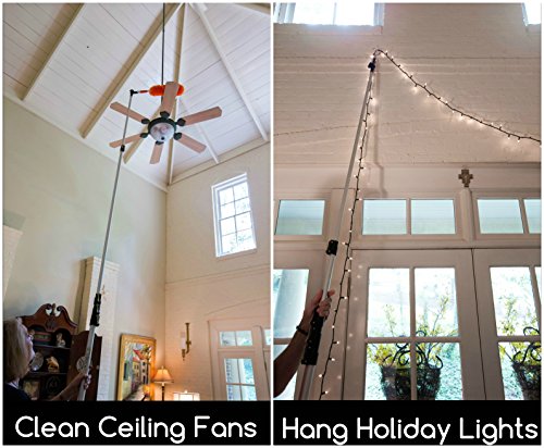 - MULTI-ANGLE TIP AND THUMB CLASPS - multi-angle tip provides over 180 degrees of rotation to find the best pole angle for cleaning gutters, dusting ceiling fans, painting and performing other unique tasks; the thumb lever clasps enable quick and easy pole extension and retraction, while the clasp screws enable clasp tension adjustment to promote optimal performance over the lifetime of the pole