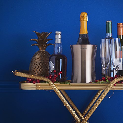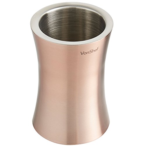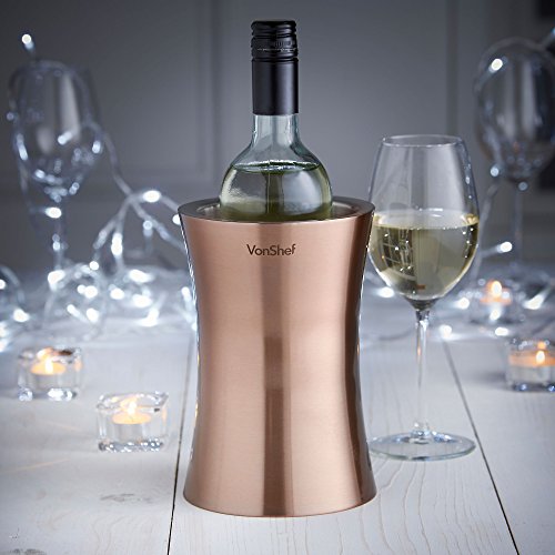 VonShef Copper Wine Cooler This Wine Cooler is a stylish and functional method to keep your wine chilled. A perfect center piece for dinner parties and entertaining giving your home a restaurant feel. Double Wall Insulation Ideal for both home and professional use this modern and unique design has a double wall construction that insulates your wine from ambient room temperature. Convenient Convenient and Easy to use, simply insert your chilled wine into our VonShef Copper Wine Cooler- no ice needed! Save valuable fridge space and avoid making trips to the fridge all evening, this really is essential for any party or occasion. Don't settle for warm wine! This contemporary and refined design makes this a truly elegant piece that will complement any bar or kitchen. 0 |