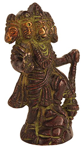 Antique Brass Statue Five Faces Hanuman Sculpture Handmade Religious Panchmukhi