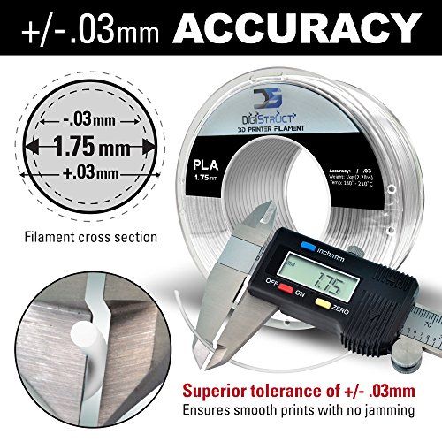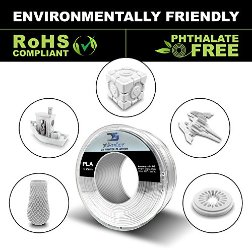 DigiStruct PLA 1.75mm 3D Printer Filament - 1kg Spool PHTHALATE-FREE - Dimensional Accuracy +/- .03 (White)