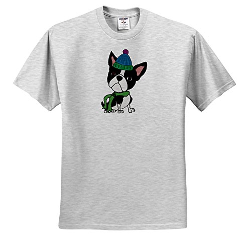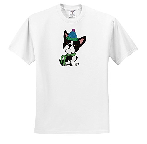 (3dRose)/Accessories/Hats/DIRECT FROM USA/3dRose All Smiles Art Pets - Funny Cute Boston Terrier Dog in Winter Knitted Hat and Scarf - T-...