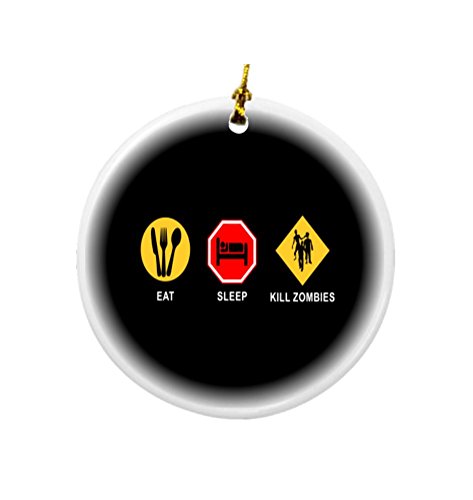 Rikki Knight Eat Sleep Kill Zombies Design Round Porcelain Two-Sided Christmas Ornaments