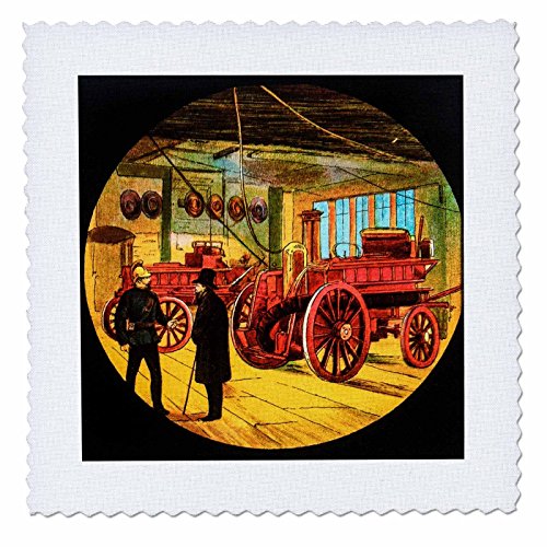3dRose Victorian Fireman in the Firehouse. Fourth in the Series. Vintage. Quilt Square, 12 x 12"