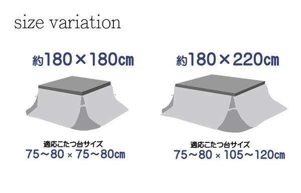 75~80cm角のこたつ台に適応
