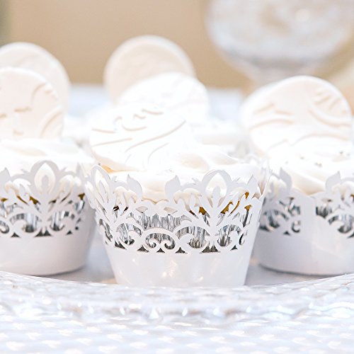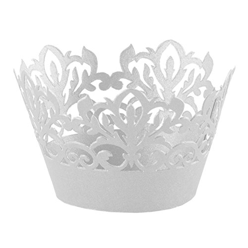Classic Damask Filigree Paper Cupcake Wrappers - White Shimmer