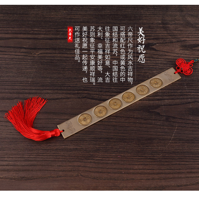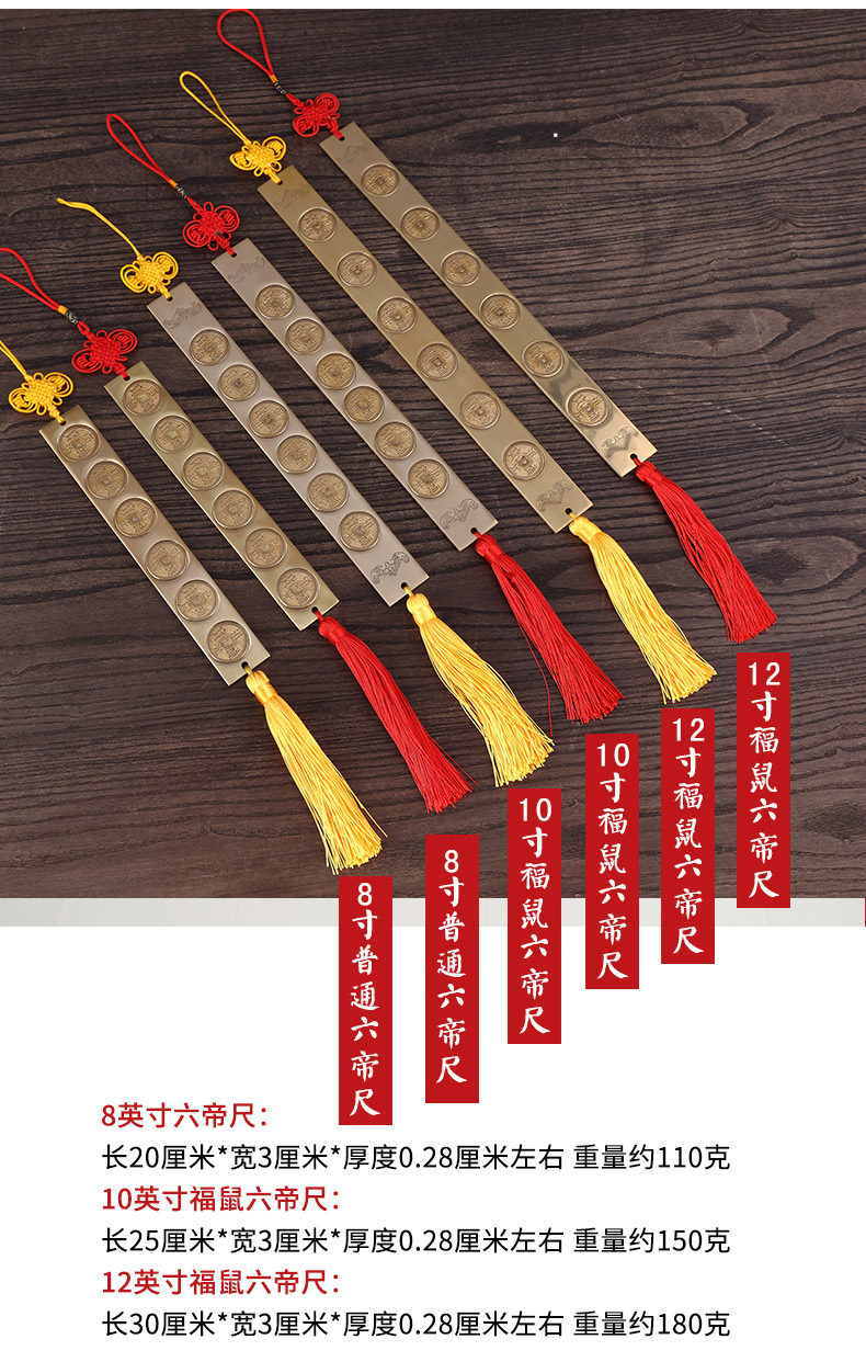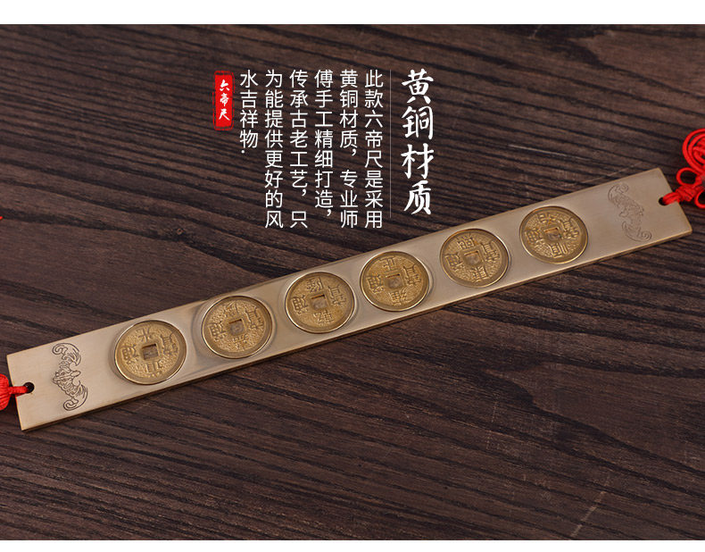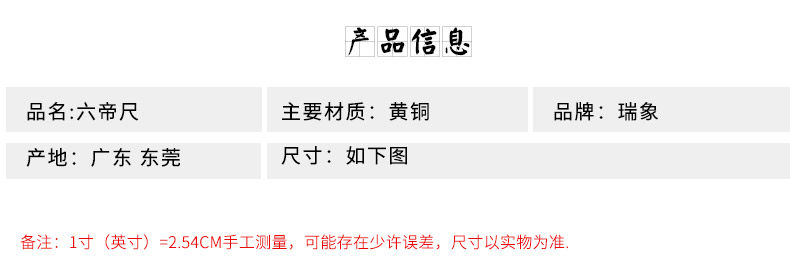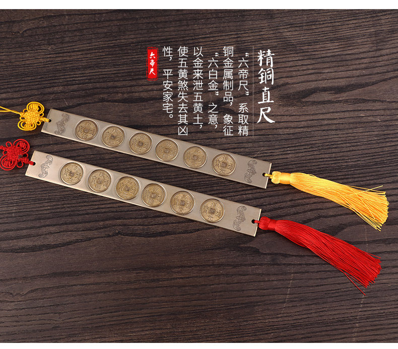 瑞象 六帝尺纯铜实心铜钱风水尺六帝铜尺五帝钱尺家居风水挂件
