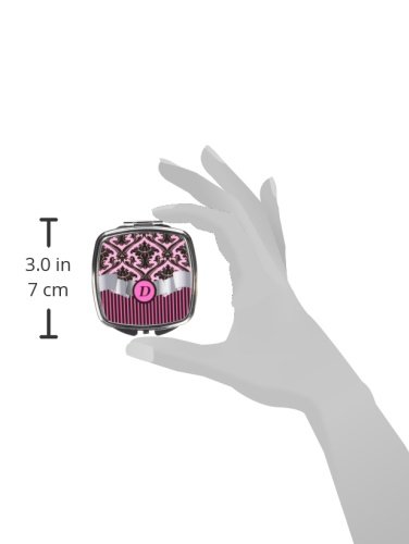 Rikki Knight Compact Mirror, Letter d Initial Hot Pink Damask and Stripes