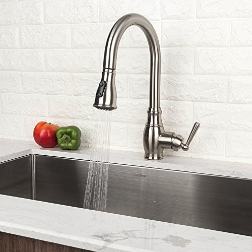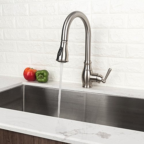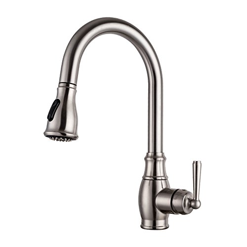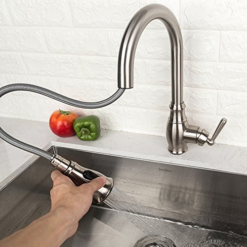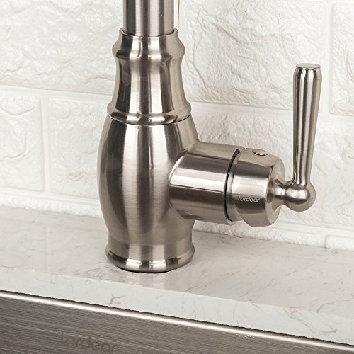 LORDEAR SLC16035 Best Antique Single Handle Pull Out Sprayer Stainless Steel Kitchen Sink Faucet, Pull Down Kitchen Faucets Brushed Nickel