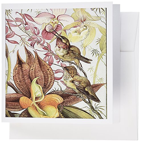 3dRose Catasetum and Cypridediums by Edward J Detmold Orchid and Hummingbirds Greeting Cards, Set of 12 (gc_126456_2)