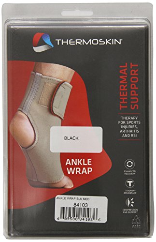 -. Binding : Sports -. Brand : Thermoskin -. Feature : Easy to use Velcro closure for ease of application and adjustable compression / Thermoskin thermal support increases the elasticity of muscles, tendons, and ligaments to reduce the risk of injury when under stress. / Thermoskin also increases the blood flow to damaged tissue to speed up the healing process, while providing light compression to counteract tissue swelling / The patented Trioxon lining creates a micro climate that allows your skin to ventilate and remain well oxygenated for hours of continuously comfortable wear. -. Label : Thermoskin -. Manufacturer : Thermoskin -. Model : THERMOANKLESM-1 -. ProductGroup : Sports -. ProductTypeName : SPORTING_GOODS -. Publisher : Thermoskin -. Studio : Thermoskin -. Title : Thermoskin Ankle Wrap