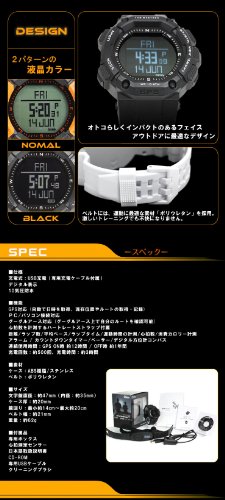 ■네비게이션 모드 목적지의 방향,목적지까지의 거리,속도,시간,경도 위도의 표시 10개의 루트 작성이 가능 99개의 포인트의 등록이 가능 3종류의 네비게이션이 가능 목적지 네비:설정 한 루트상으로,목적지를 선택 네비게이션을 행한 루트 네비:설정 한 루트의 순번에 네비게이션을 행한 백 워드 네비:설정 한 루트의 역순서에 네비게이션을 행한다 ■디지탈 kompas 방위의 표시 방향의 표시 목적지의 방향의 표시 ■카운트다운 타이머 99:59:59까지 계측 가능 타이머가 나머지 10초를 하회하면 매초 알람음이 울립니다 0초가 되면 알람음이 울리고, 버튼을까지(종점)멈춤지 않습니다 ■알람 5개의 알람 설정(알람1~알람5) ■시스템 설정 조작음 ON/OFF 화면 콘트라스트의 조정 단위의 선택(kg/M/km인지(든가) lb/ft/mi의 선택) 언어의 선택(영어/프랑스어/스페인어/독일어/이탈리아어) ■듀얼 타임 ■파워 세이브