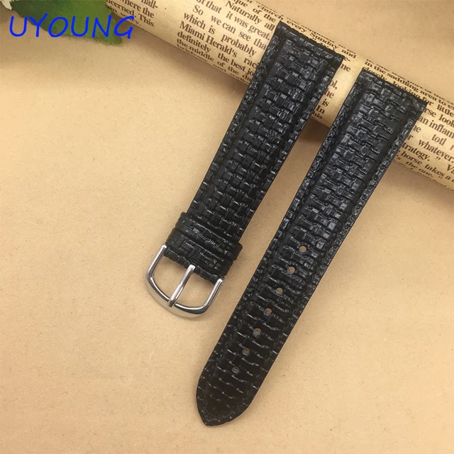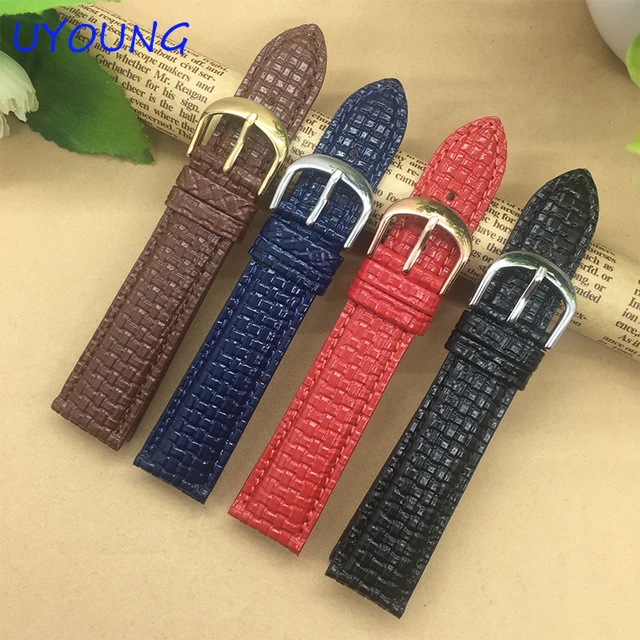 | [해외] 품질 가죽 밴드 시계 20 미리메터 짠 패턴 블랙 레드 블루 교체 가죽 시계 스트랩 미세 스틸 버클 |