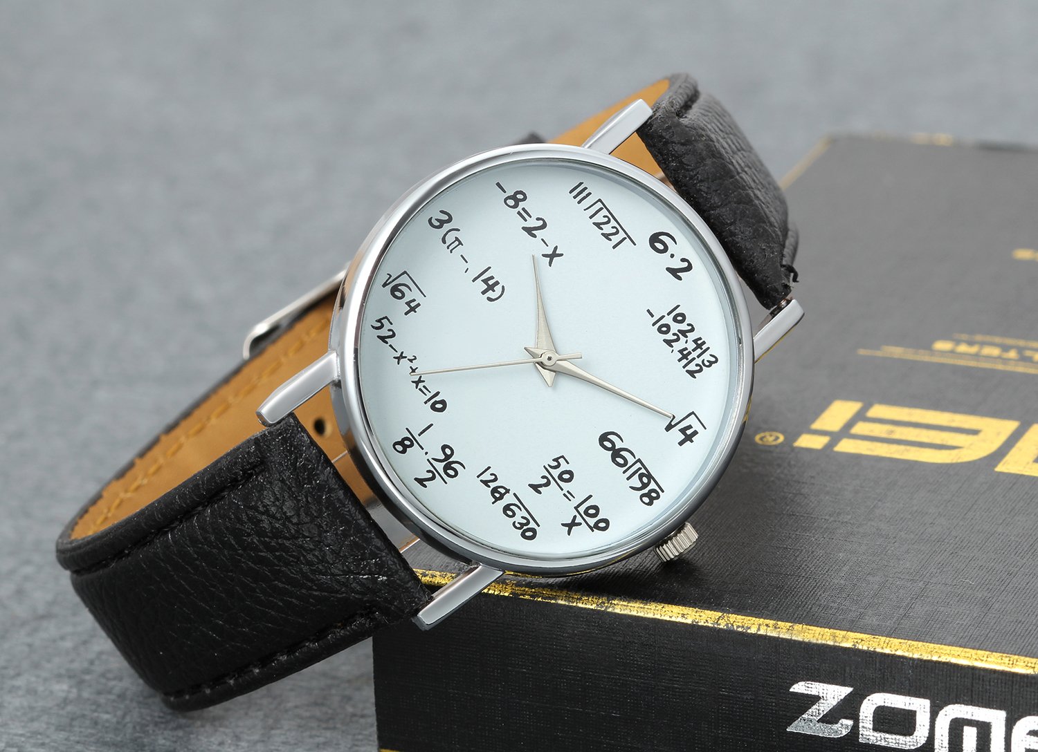 【Specification】 Mathematical sign, leather belt, quartz wristwatch, daily life waterproof