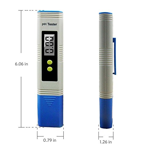 -. Feature : ➤•HIGH ACCURACY: the pH meter with auto calibration button can automatically identify standard buffer solution of pH4.00, pH9.18, and pH6.86; its high accuracy 0.03pH range of error ensures more reliable results; automatically temperature compensation(ATC) ranges from 0℃〜50℃(32°F~122°F) automatically to ensure accurate readings. / ➤•EASY TO OPERATE: just press the button to switch power, insert and stir gently in the test solution, then the LCD display with back light get stable pH value and temperature 0℃〜50℃(32°F~122°F) within seconds, no more color charts or messy test strips. / ➤•PORTABLE FOR WIDE USE: this pen-type instrument has a compact size, weighs only 1.76 oz (50g) that is perfect for outdoor or household use, ideal for testing drinking water, pool, aquarium, spa, or hydroponics. / ➤•USER'S MANUAL: this product comes along with a detailed instruction about operation and pH calibration correction for your reference.