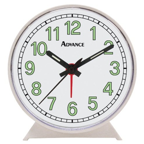 Alarm clock. Keywind alarm. Loud bell alarm. Luminous hands. 36 hour movement. No battery or electricity required. White. Made in China.