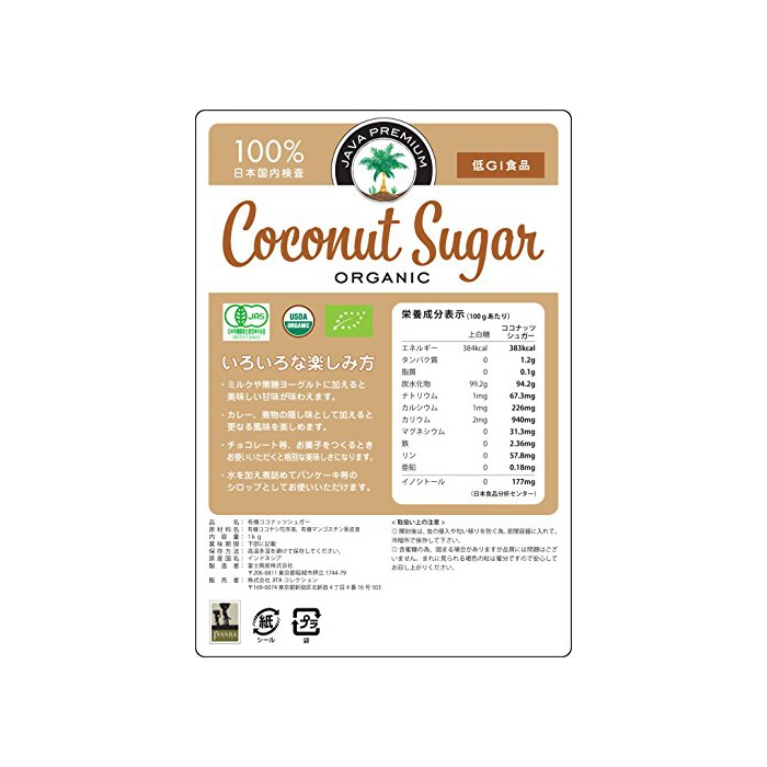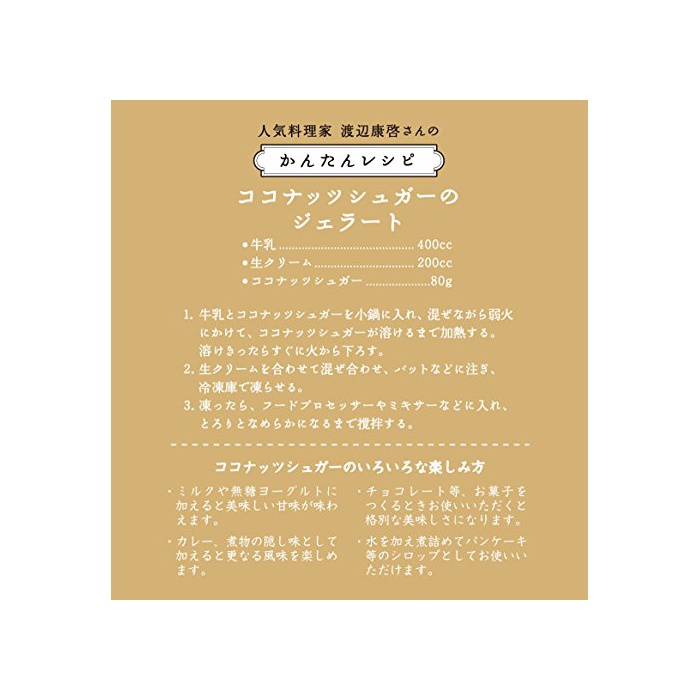 저GI식품 천연의 여기 야자의화 서액(알코올화 방지 이기 때문에,동남아시아에서는 유기 망고스틴 과피액을 미량 사용)부터 만들었 무표백 설탕입니다.organic coconut sugar MADE FROM 100% PURE COCONUT NECTOR 무정제,무착색,무향료,무방부제,그리고 미네랄(철칼슘)풍부 이노시톨 함유