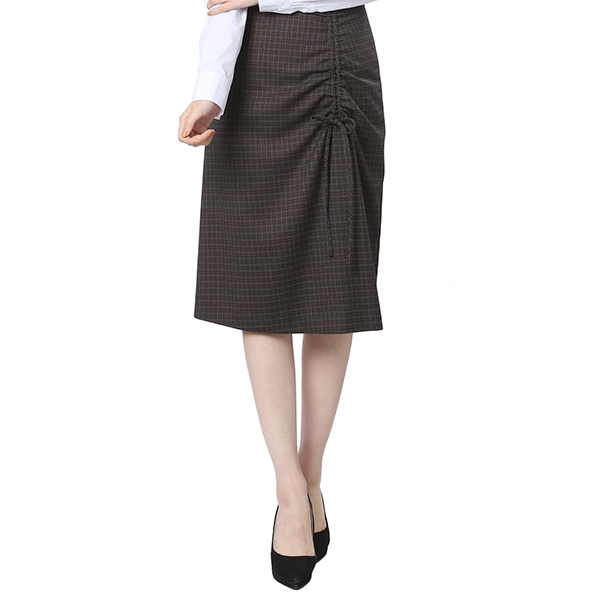 네이비 컬러에 체크 패턴과 셔링 장식으로 포인트를 준 미디 스커트 입니다. 셔링 장식의 여성스러움과 체크 패턴의 고급스러움이 멋스러운 아이템 입니다.