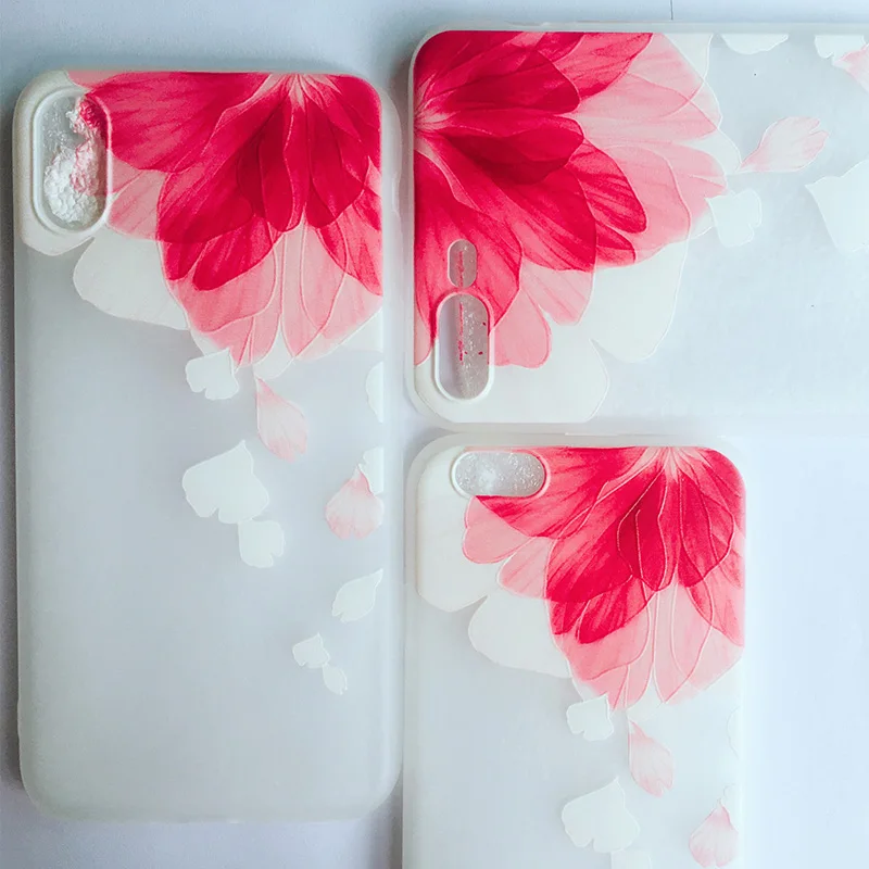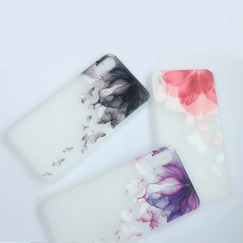 Features:Fashion 3D Relief Flowers Watercolor Petals Case