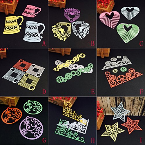?New 250 Type Metal Cutting Dies Stencil Scrapbook Paper Card Craft Embossing DIY Description: ??? Condition: 100% Brand New ??? Quantity: 1PC Size :A:76.6x81.7mm B:109.5x116.6mm C:99.8x86.7mm D:103x128mm E:32.9x150.5mm F:68x128.7mm G:95.1x103mm H:66.6*122.3mm I:101x97mm ??? Material: Carbon steel ??? High Quality ??? Color: Gold ??? You can replace the different colors of paper or cloth, produced by the effect will be different ??? DIY high carbon steel etching knife mold, paper knife mold, cloth knife mold ??? Due to the difference Between Different Monitors, ??? The Picture May Not Reflect The Actual Color Of the Item. Thank you! Package included: ??? 1 Pc Scrapbooking 0 |