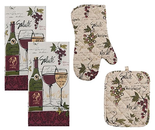 4 Piece Wine Not Kitchen Set - 2 Terry Towels, Oven Mitt, Potholder
