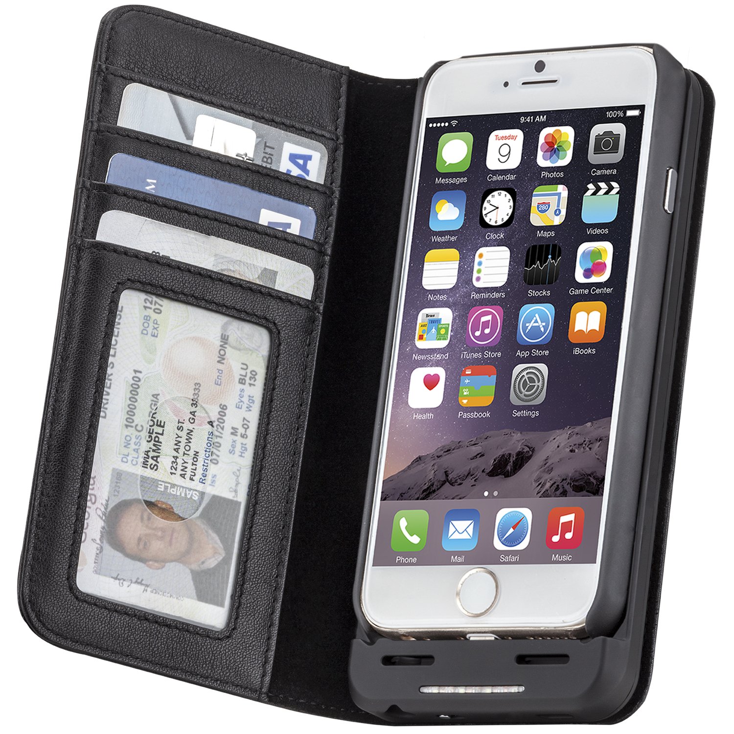 Built-in 3500 mAh battery, notebook type card storage capacity strengthened wallet style case